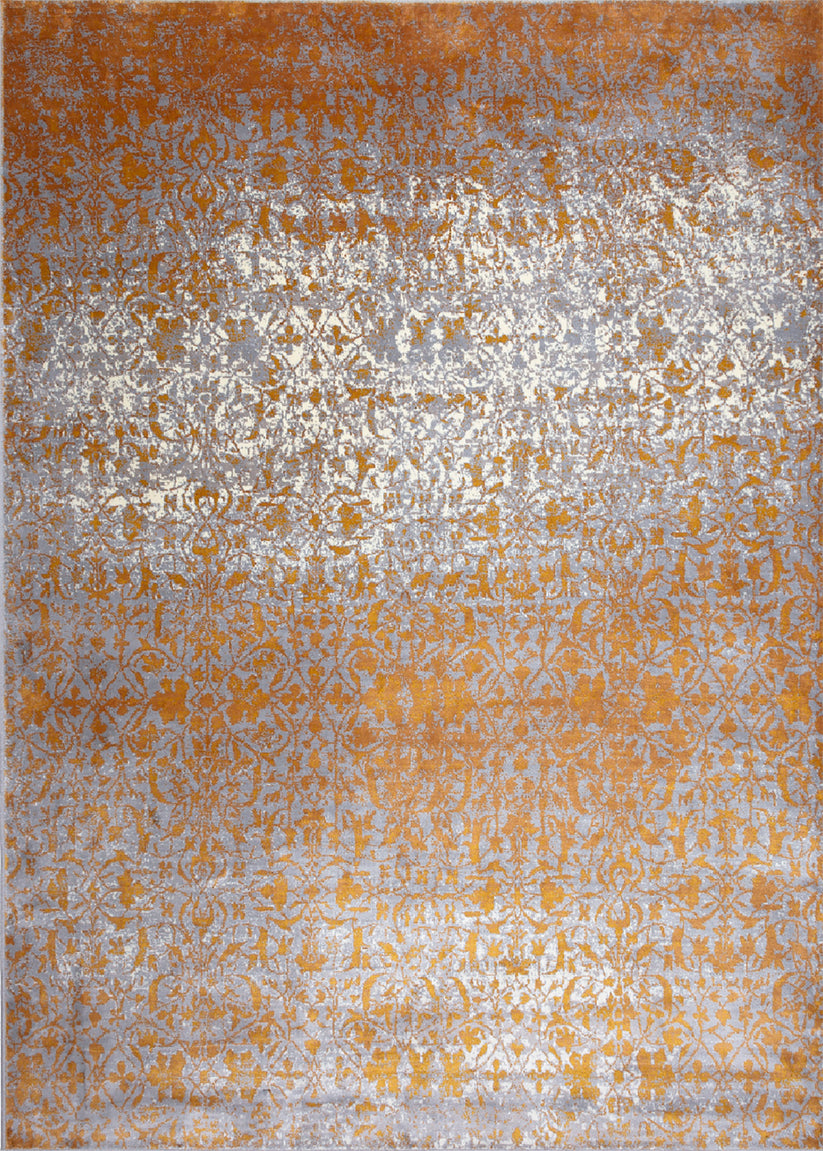 Alfombra Eco en color naranja y plata, disponible en diferentes tamaños.
