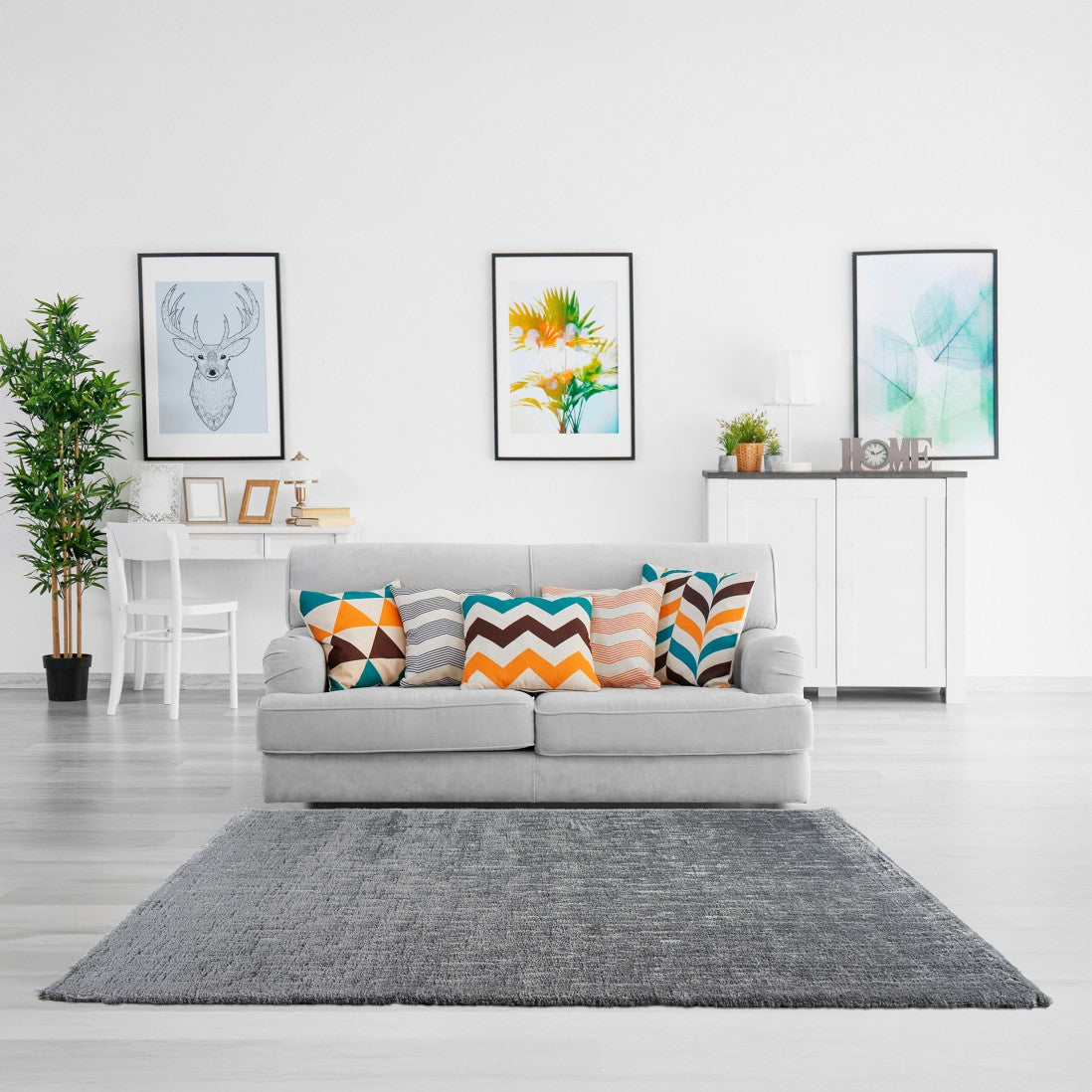 Alfombra Fez con un diseño minimalista liso, fabricada en poliéster y con 25 mm de grosor. Su suavidad al tacto la convierte en una pieza perfecta para dar la bienvenida al hogar o colocar en cualquier espacio de interior y aportar personalidad.