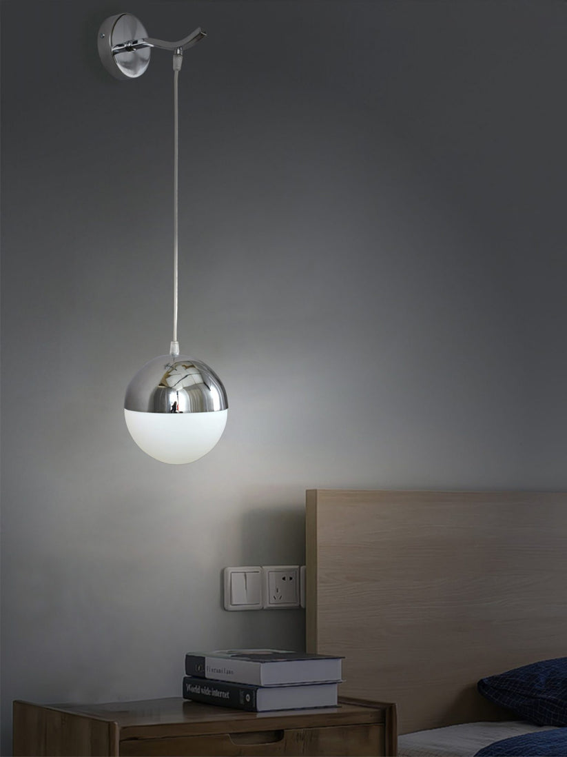 Aplique de pared en color cromo fabricado de acero, con un portalámparas de cristal blanco. Una pieza de diseño vintage con toque moderno, perfecta para colocar en el dormitorio, entrada o la habitación de estudio/trabajo.