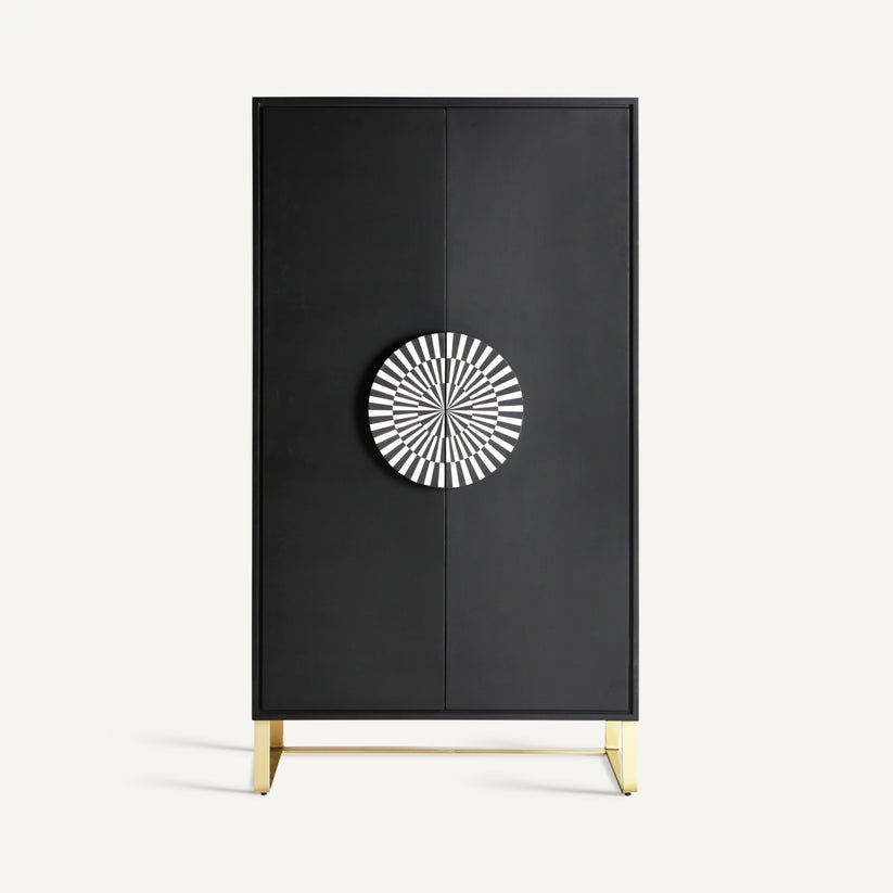 Armario Gatsby fabricado en madera dm, con hierro y detalles en hueso, en color negro y blanco. Fusión de diseño y funcionalidad. Este armario de estilo japonés aporta un toque de sofisticación y elegancia.