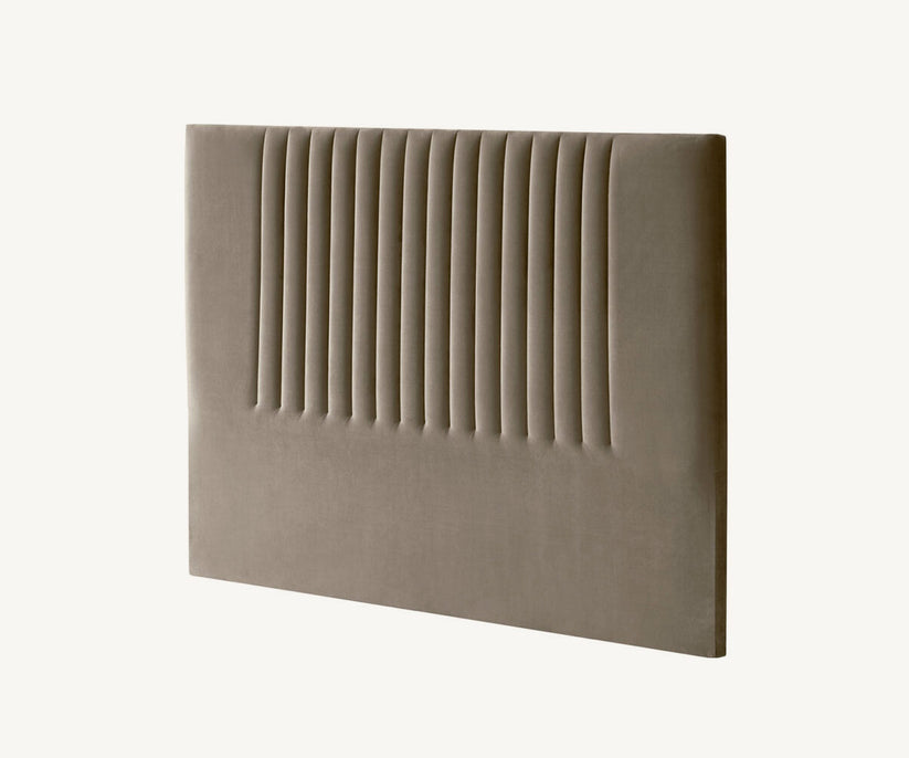 California es un cabezal de cama acolchado con motivo de rayas verticales.