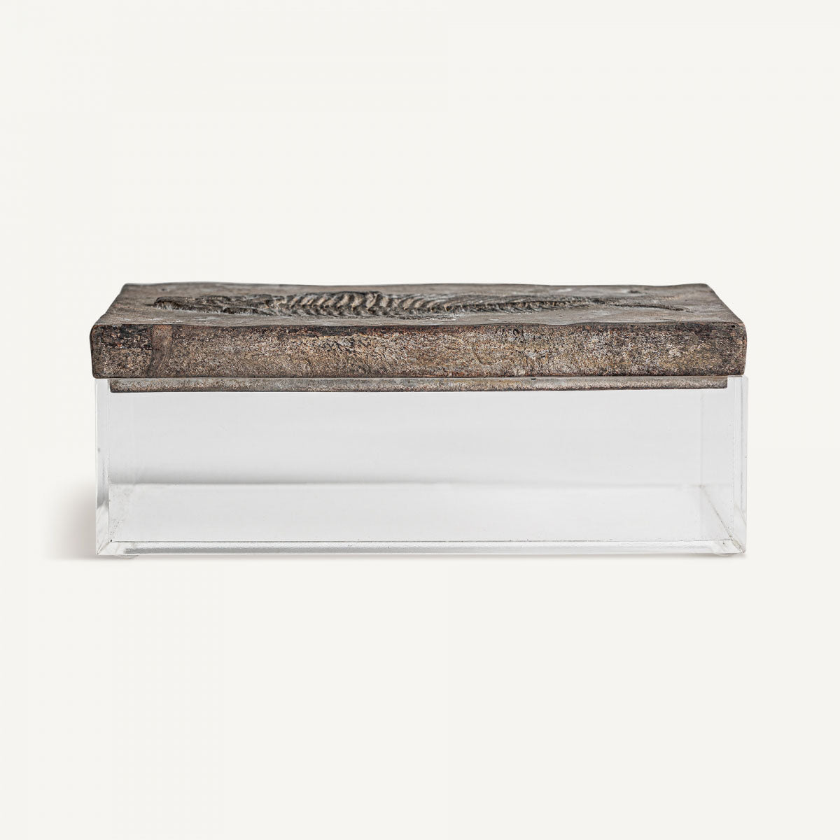 Su estructura con acabado oscuro y vetas visibles evoca la calidez de lo natural. La caja Ébano está fabricada en resina de color marrón claro, combinado con acrílico transparente. Ideal para acompañar en una mesita, una cómoda o para decorar una vitrina o estantería.