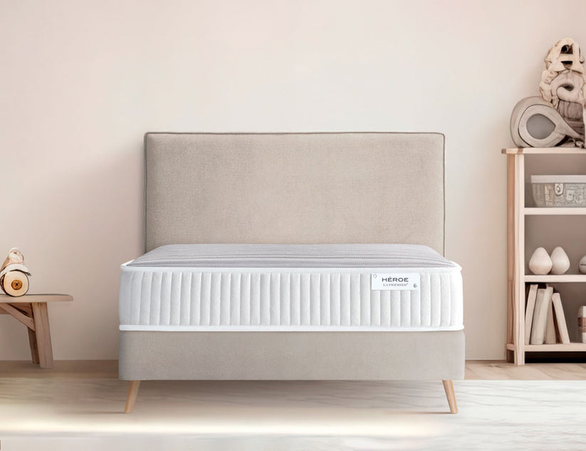 Héroe es un colchón pensado para acompañar el descanso de los niños y adolescentes en su etapa de crecimiento.
