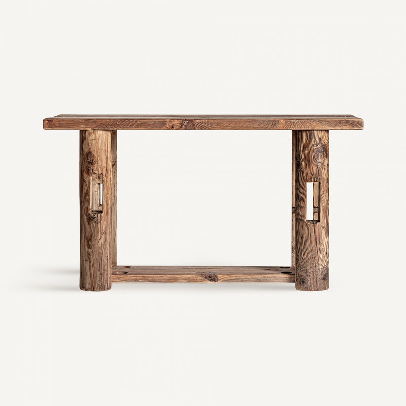 Consola Breive de estilo rústico que combina funcionalidad con diseño artesanal. Fabricada en madera de pino reciclado con un acabado envejecido, resalta por su carácter natural.
