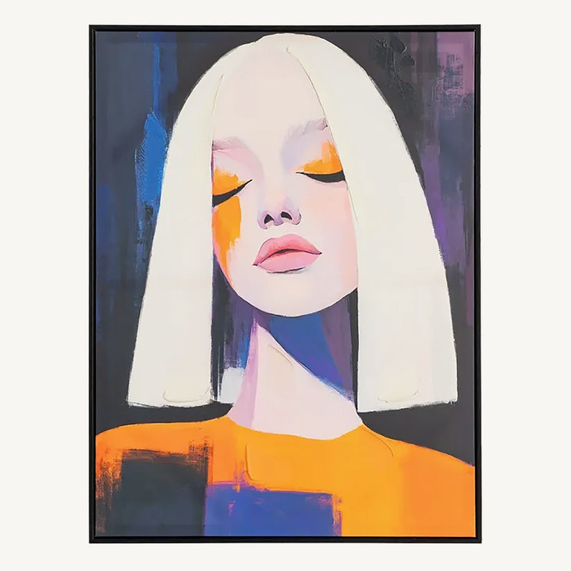Lienzo impreso con acabado a mano con una composición figurativa con altos contrastes de color.