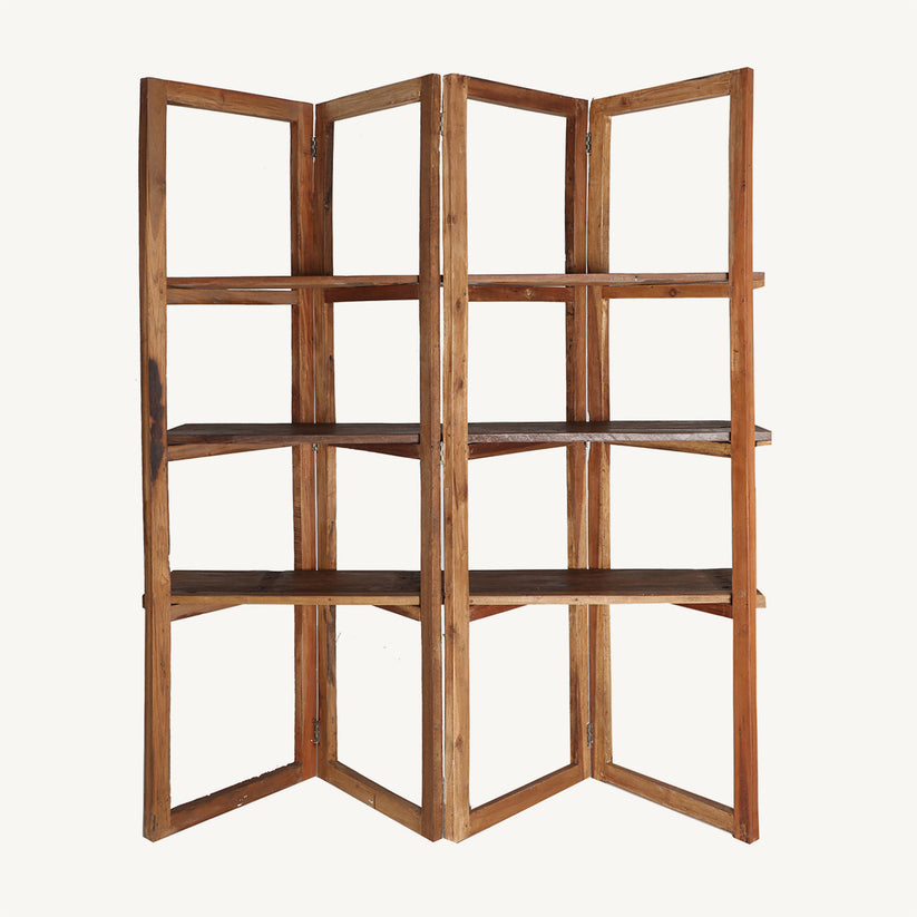 Estantería rectangular Akviran en color marrón envejecido, de estilo étnico. Fabricado en madera de mahogany. Producto desmontable y plegable.