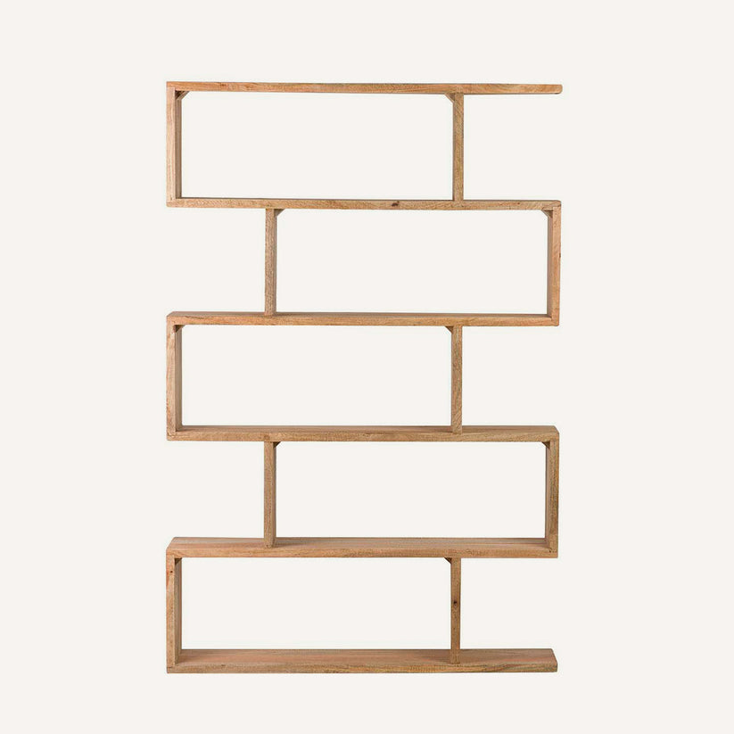 La estantería Marianthus en color marrón natural está fabricada en madera de mango. Con influencia minimalista japonesa y con una estructura funcional la versatilidad de esta estantería con baldas al aire la hace perfecta para múltiples espacios, como salones o estudios, o gracias a sus módulos abiertos como separación de ambientes entre el comedor y el salón.