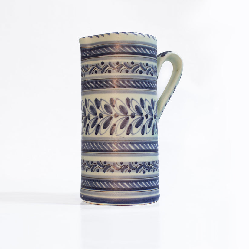 Jarra Odre, en color azul y blanco, fabricada de cerámica.