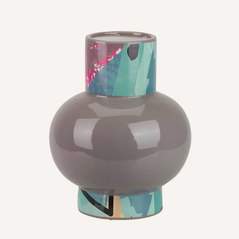 Jarrón Gladiolo en color tonos multicolor, gris, azul, verde, rosa, de estilo abstracto. Fabricado en cerámica.