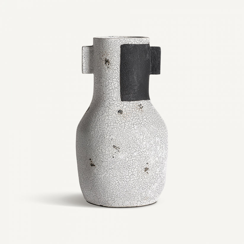 Jarrón Mintlaw en color blanco y negro, de estilo contemporáneo. Fabricado en material terracota.