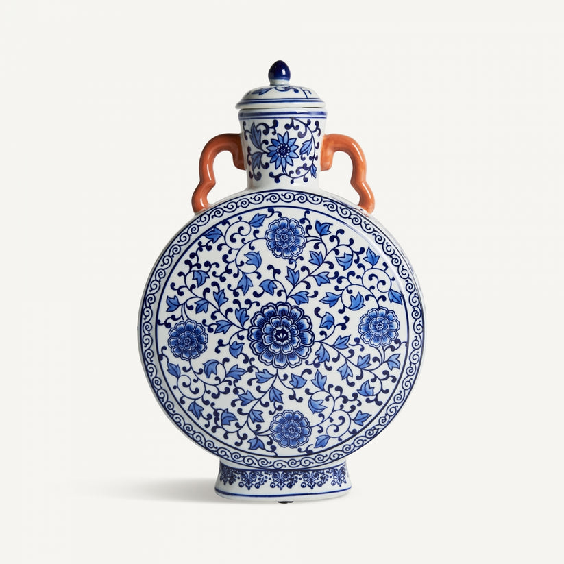Jarrón Plitz, tibor, en color azul de estilo oriental. Fabricado en cerámica artesanal.