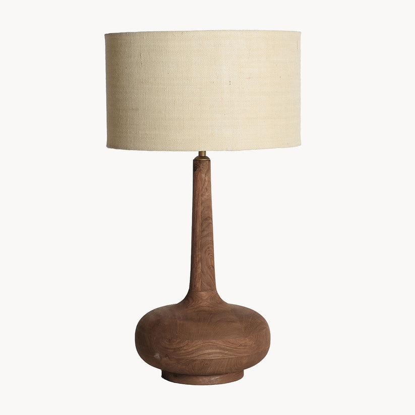 Lámpara de mesa Manyu en color marrón, fabricada en madera de mango combinado con yute. Es ideal para añadir una iluminación cálida y decorativa a cualquier espacio, aportando un toque natural. Su diseño contemporáneo la hacen perfecta para colocar en salones, dormitorios o estudios modernos.