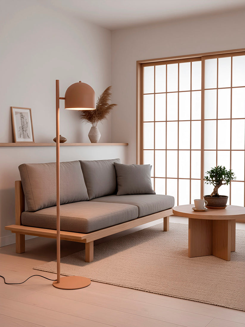 Lámpara de pie en color teja, fabricada de acero con un portalámparas. Perfecta para iluminar con estilo y funcionalidad los momentos de relax, en cualquier área del hogar. Fácil de trasladar.