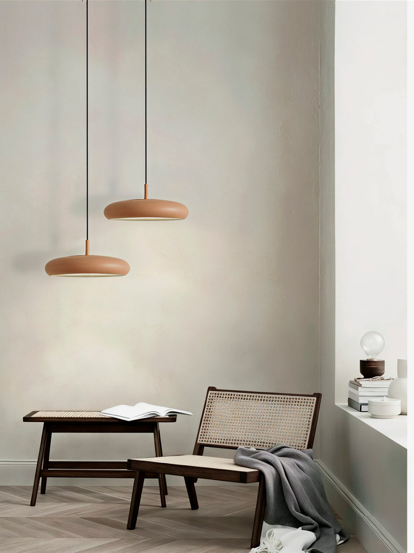 Añade luz y estilo a cualquier estancia con la lámpara colgante Azha circular, en color teja mate. Fabricada de acero, cuenta con un portalámparas envolvente y cable en negro, creando un diseño moderno y versátil que se adapta a la cocina, al dormitorio, el salón o tu rincón de relax.