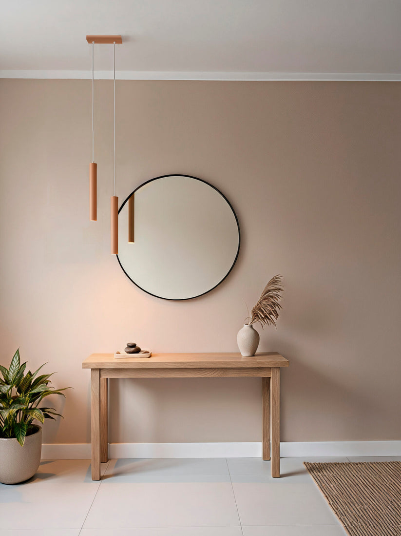 Da personalidad a tu entrada, salón o comedor con la lámpara colgante Imai en color teja. Fabricada en acero, incorpora dos cilindros largos y estilizados que funcionan como puntos focales, creando una iluminación moderna y equilibrada.