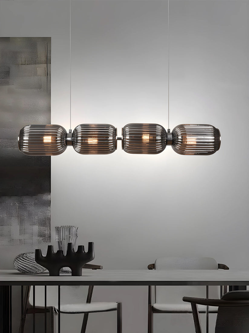 Lámpara de techo en color acero con 4 portalámparas de cristal ahumado negro, fabricada de acero. Esta lámpara es perfecta para iluminar diversos espacios, tanto en salones como cocinas, aportando diseño, sofisticación y personalidad.