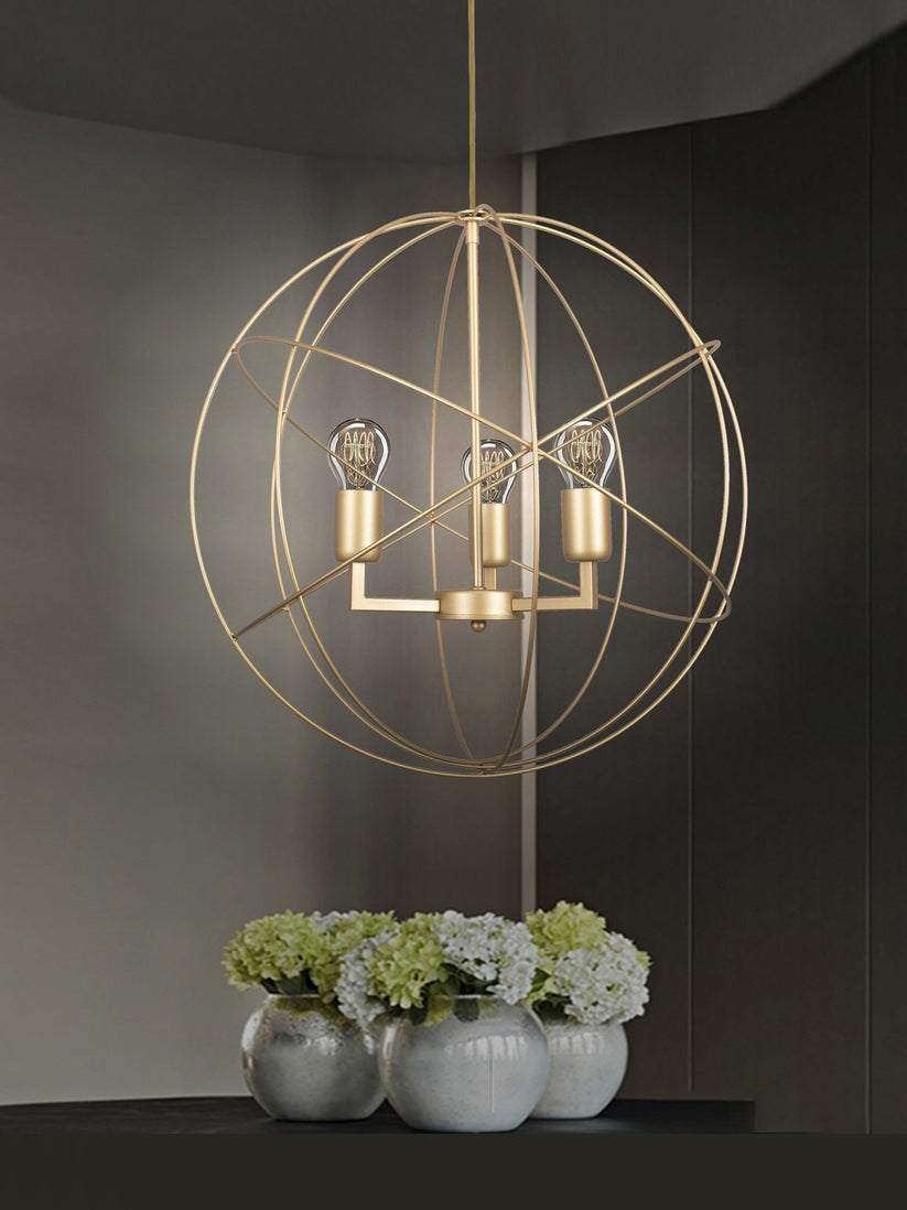 Lámpara colgante de techo en color oro fabricada de acero con 3 portalámparas. Perfecta para el salón, llamará la atención de todos.