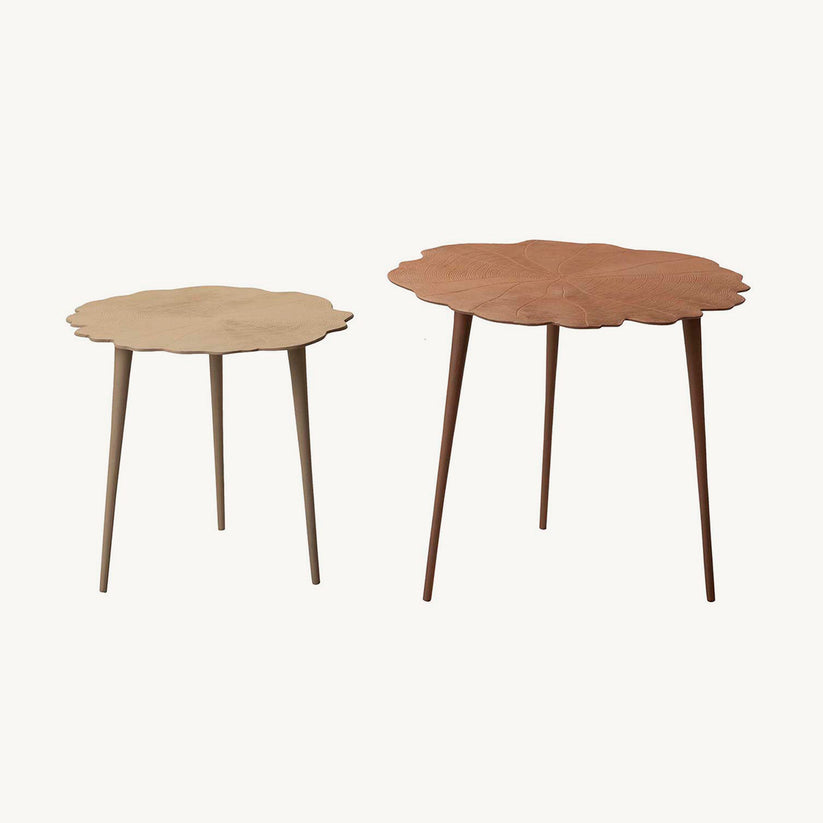 Mesa auxiliar Cedrus, set de dos mesas, en color naranja oscuro y beige. Fabricadas en aluminio.