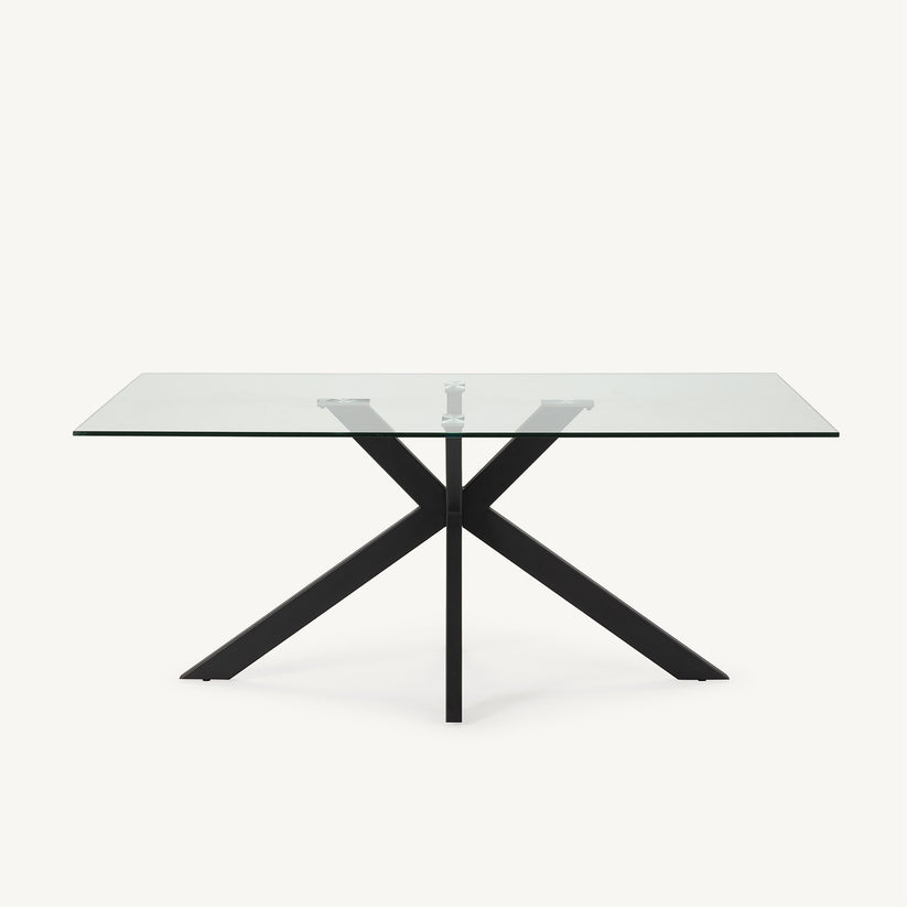 Mesa comedor Celia, rectangular, en color negro y cristal templado. Fabricada de metal y cristal.
