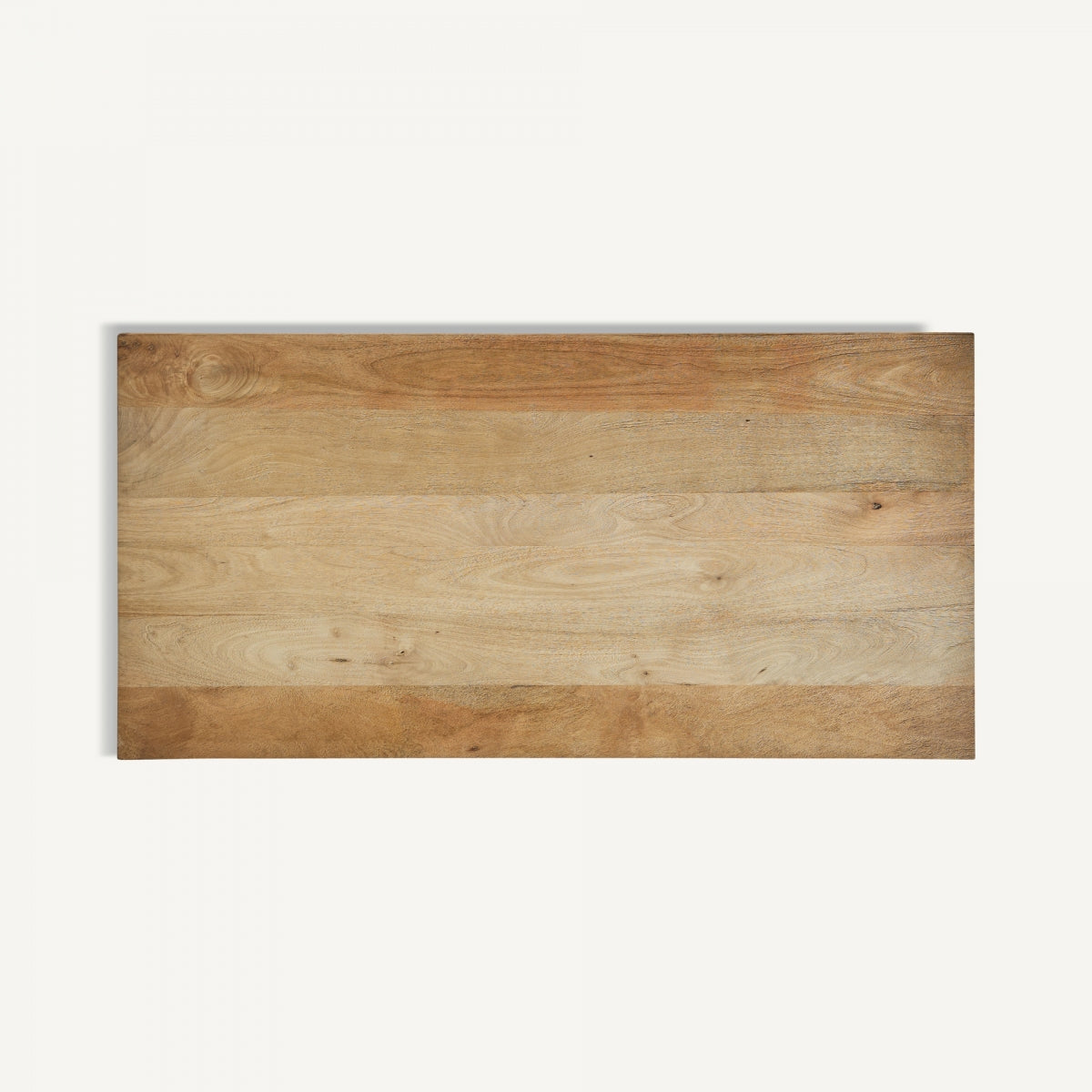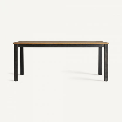 Mesa de comedor Courry rectangular, en color natural y estructura en negro, que combina elegancia y durabilidad. Con unas medidas de casi 1,90 de largo esta mesa fusiona la calidez de la madera de mango con la robustez del hierro, aportando un aire contemporáneo. Es ideal tanto para reuniones familiares del día a día como para cenas más formales.