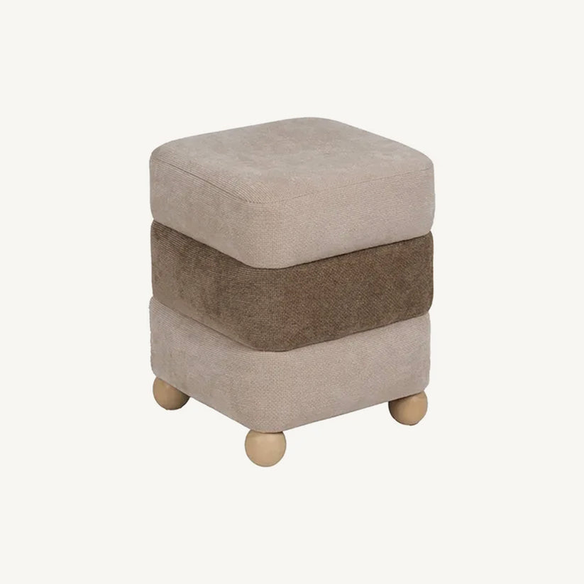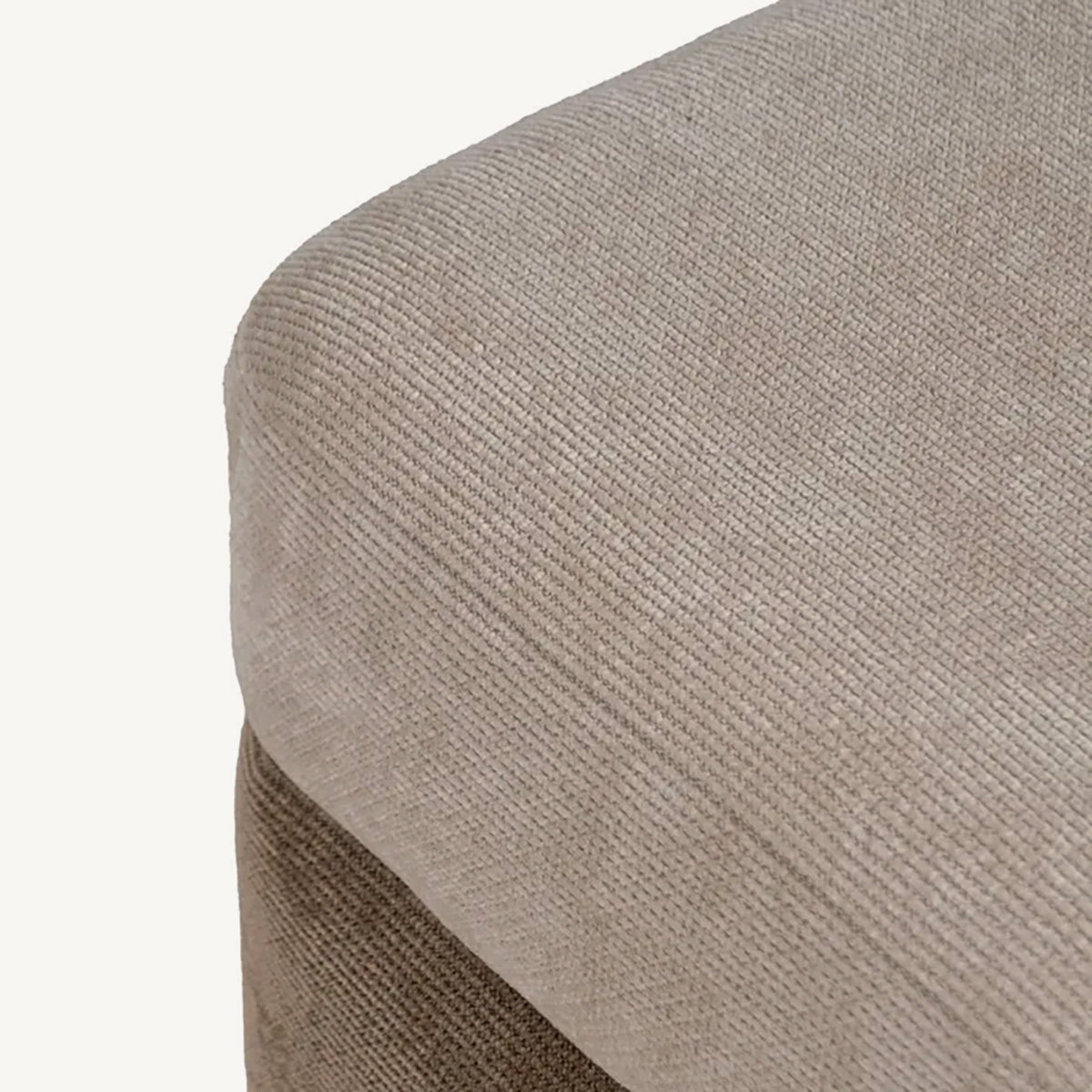 Su diseño combina tonos neutros de color marrón/beige y una textura suave por el tejido 100% poliéster, lo que lo convierte en una pieza auxiliar acogedora. Es perfecto como reposapiés, asiento extra o detalle decorativo en salones y dormitorios.