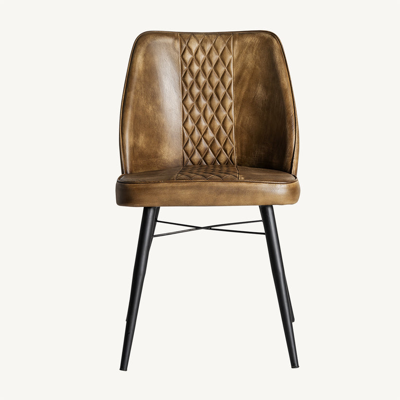 Silla Brouse en color camel, de estilo vintage. Fabricado en piel, combinado con hierro.