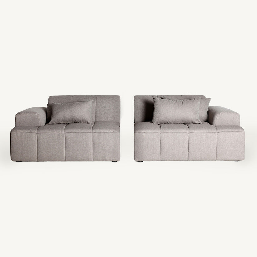 Es un sofá compuesto por dos amplios módulos que podrás mover y colocar según las necesidades del espacio. Su diseño de amplias dimensiones bajo líneas redondeadas orgánicas, lo convierte en el centro de atención de cualquier salón.
